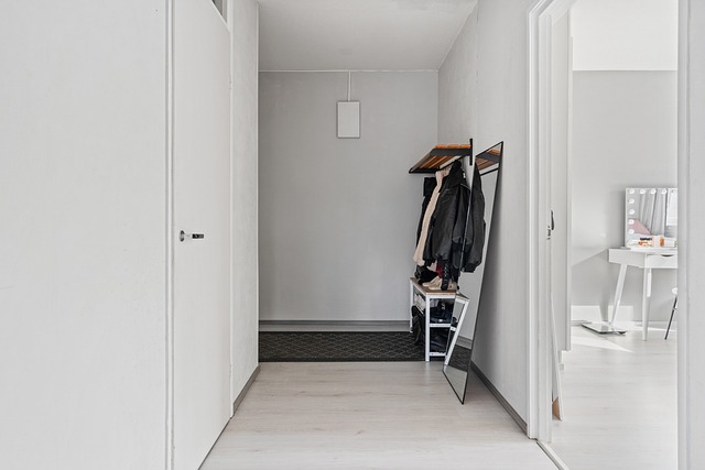 - Eteisessä laminaattilattia ja maalatut seinät. Vaatehuoneessa laminaattilattia ja maalatut seinät.