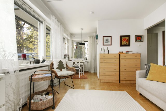 Keskusta kupeesta, kunnon kivitalosta todellinen tilaihme, pieni kaksio mikä tuntuu neliöitään isommalta.