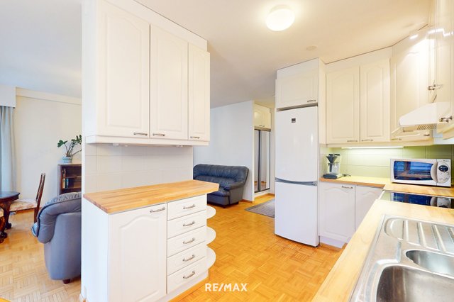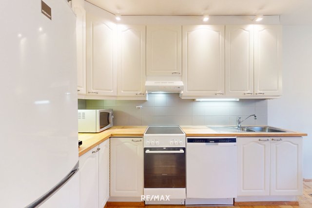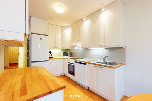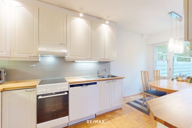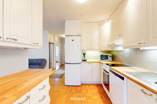 - Vaaleasävyinen keittiö tarjoaa erinomaiset puitteet sujuvaan arkeen ja yhteisiin hetkiin. Varusteluun kuuluvat jääkaappipakastin, keraaminen liesi, astianpesukone sekä liesituuletin. Reilut kaappi- ja laskutilat tekevät ruoanlaitosta vaivatonta. Välitila on laatoitettu, työtasot ovat puuta, lattia parkettia ja seinät maalatut, luoden keittiöön kodikkaan ja lämpimän tunnelman. Keittiössä on hyvin tilaa neljän hengen ruokailuryhmälle. Keittiö muodostaa olohuoneen kanssa avaran ja yhtenäisen oleskelutilan – täydellinen ympäristö niin arkeen kuin juhlaan.
