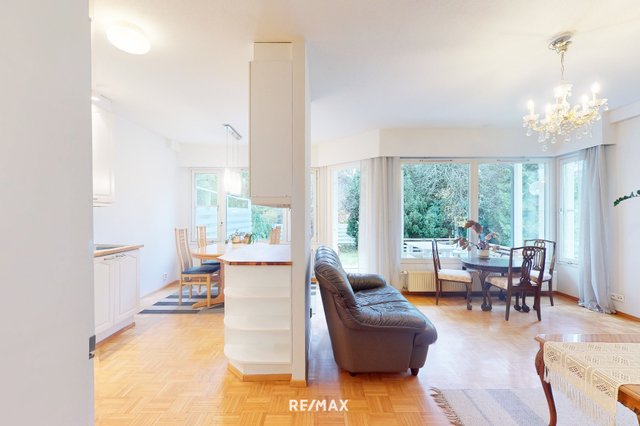 - Valoisa olohuone kutsuu viihtymään. Ikkunoista avautuu näkymä rauhaisalle takapihalle, ja terassille pääsee suoraan olohuoneesta. Olohuone luo keittiön kanssa yhtenäisen ja avaran tilan. Olohuoneen lattia on parkettia ja seinät maalatut. Ikkunoiden ilmansuunta on etelään.
