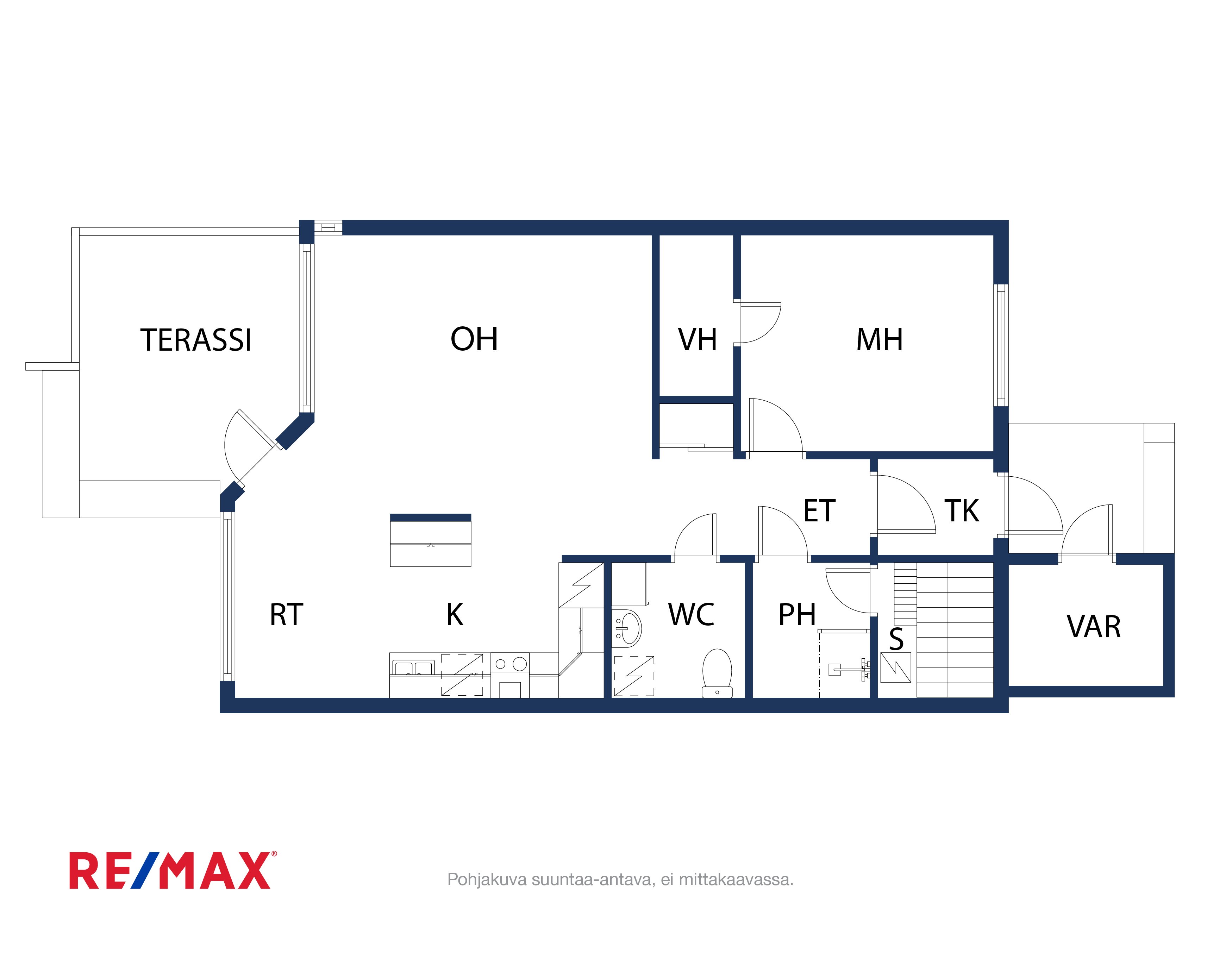 - Olohuoneesta on käynti huoneiston omalle piha-alueelle ja etelänsuuntaiselle terassille.