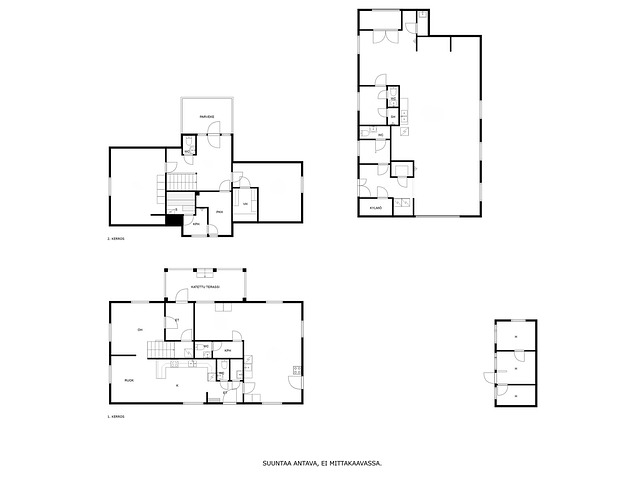 - Rakennuksen kerrosala on Kärkölän kunnan ilmoituksen mukaan 199 m². Huoneistoala on piirustuksien mukaan asunto: 119,5 m² ja leipomo: 53,6 m² . Edellä mainittu huoneistoala saattaa tämän ikäisessä kohteessa poiketa olennaisestikin nykyisen ja rakentamisaikaisen mittaustapojen ja standardien mukaan laskettavasta huoneistoalasta. Rakennuksen todellinen huoneistoala voi siis olla esitteessä mainittua pienempi tai suurempi.