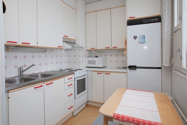 - Ikkunallinen keittokomero, johon mahtuu pieni pöytä