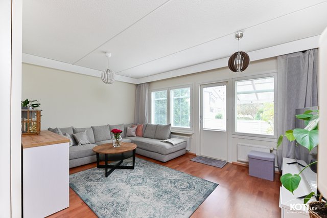 Kodin sydän on avara olohuone, josta avautuu kauniit näkymät omalle terassille. Keittiössä on kaikki tarpeellinen arjen sujuvuuteen, ja sauna tarjoaa rentouttavat löylyt pitkän päivän päätteeksi. Kaksi hyvän kokoista makuuhuonetta yläkerrassa. Oma piha on suojaisa ja viihtyisä.