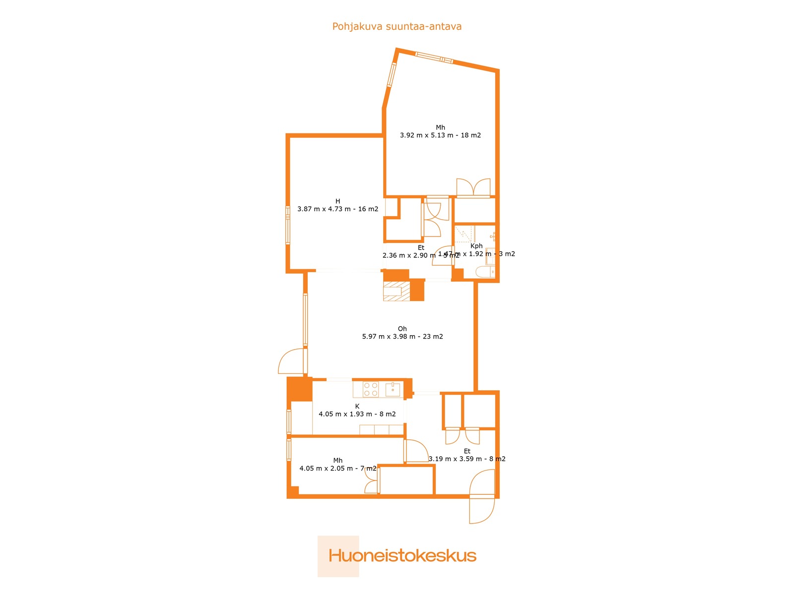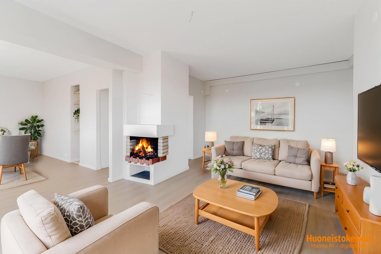 Asunnon neljä persoonallista ja avaraa huonetta tarjoavat runsaasti tilaa niin arkeen kuin juhlaan. Huoneiden suuret ikkunat tulvivat luonnonvaloa, ja upeasti viimeistelty sisustus henkii modernia eleganssia ja asumismukavuutta. Tehokas ja tyylikäs keittiö tarjoaa erinomaiset puitteet kokkailuun – arjen toimivuus yhdistyy kauniiseen estetiikkaan. Asunnon sydämenä toimii tunnelmallinen takka, joka tuo lämpöä ja kodikkuutta pimeneviin iltoihin.
