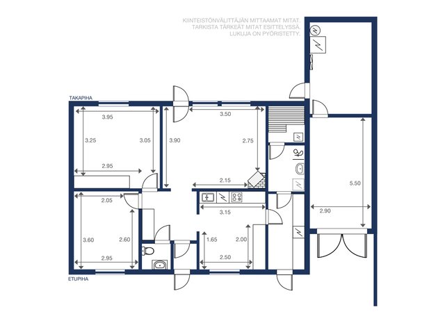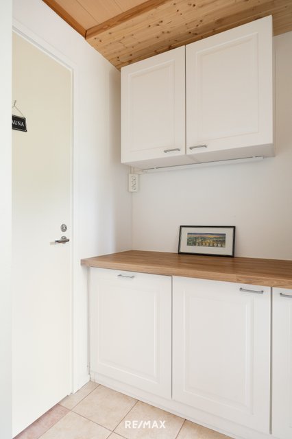 - Kiinteät kaapistot sekä ulkovarasto (puolilämmin)