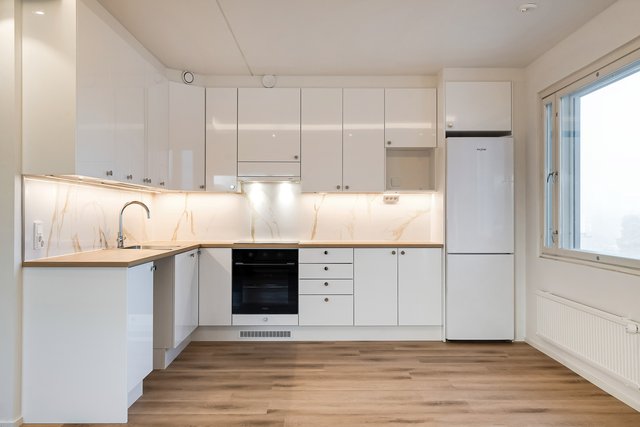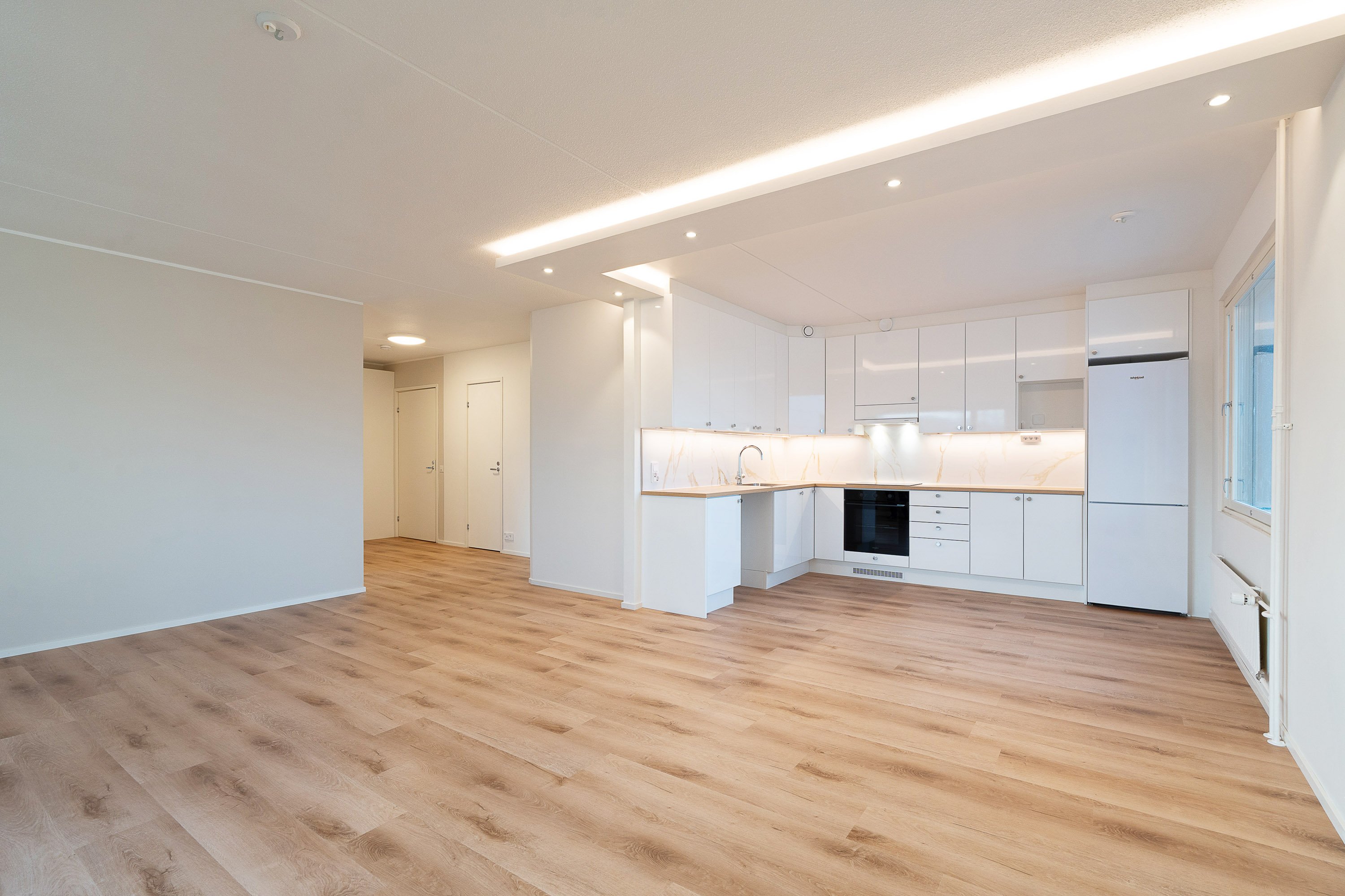 Asunto Oy Päivännousu – Uudenveroinen, laadukkaasti remontoitu 80 m²:n kolmio hissitalon kuudennessa kerroksessa. Vuonna 2025 valmistunut laaja pintaremontti tuo kotiin modernin ja raikkaan ilmeen: uudet vinyylilattiat, täysin uusittu keittiö kodinkoneineen sekä kauttaaltaan uusitut ja maalatut seinäpinnat tarjoavat muuttovalmiin kokonaisuuden. Kylpyhuone on siistikuntoinen ja säilytetty alkuperäisessä asussaan.