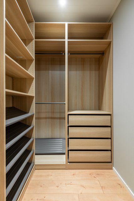 - Kaapistot. Erillisen vaatehuoneen lisäksi, vaatteiden säilytystilaa yhden makuuhuoneen yhteydessä.