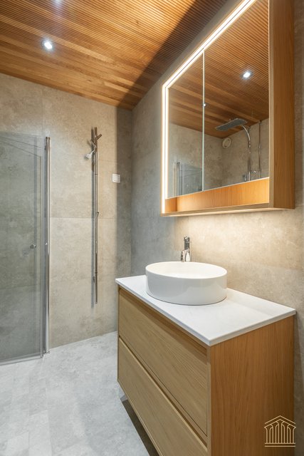 - Suihkuseinä, pesukoneliitäntä, peilikaappi, ja allaskaappi