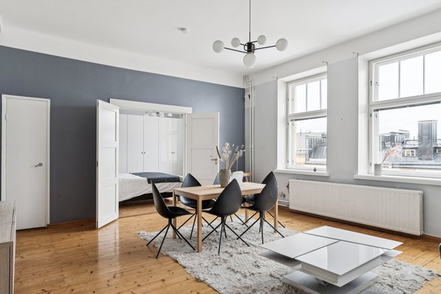 Korkea huonekorkeus, näkymät kattojen yli, oma parveke, valoisa