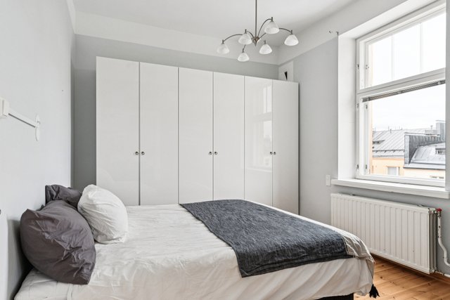 Rauhallisella Kristianinkadulla hurmaava parvekkeellinen iso kaksio. Tämän kodin sydän on valoisa iso olohuone, josta näkymät taloyhtiön / korttelin sisäpihalle. Olohuoneen yhteydessä myös alkovi. Asunnon makuuhuoneen pariovet avautuvat olohuoneeseen. Keittiö sijaitsee eteisen yhteydessä, mutta olisi mahdollista remontoida ja avata kulku olohuoneeseen, tai siirtää keittiö kenties alkoviin. Asunnossa on pieni parveke, josta huikeat näkymät kattojen yli, Kallion kirkontornikin näkyy. Huoneistossa on juuri uusittu kylpyhuone yhtiön LVIS-remontin yhteydessä. Taloyhtiössä on myös juuri uusitut saunatilat.