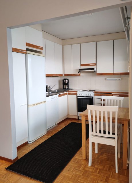 Keittiössä on kaikki tarvittavat kodinkoneet, kuten jääkaappi-pakastin, liesi, liesituuletin ja astianpesukone. Kylpyhuoneessa on pesukoneliitäntä ja sauna tarjoaa rentouttavat löylyt.