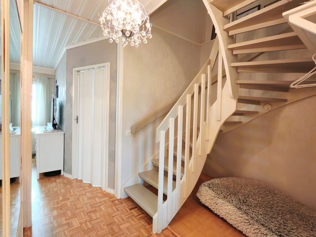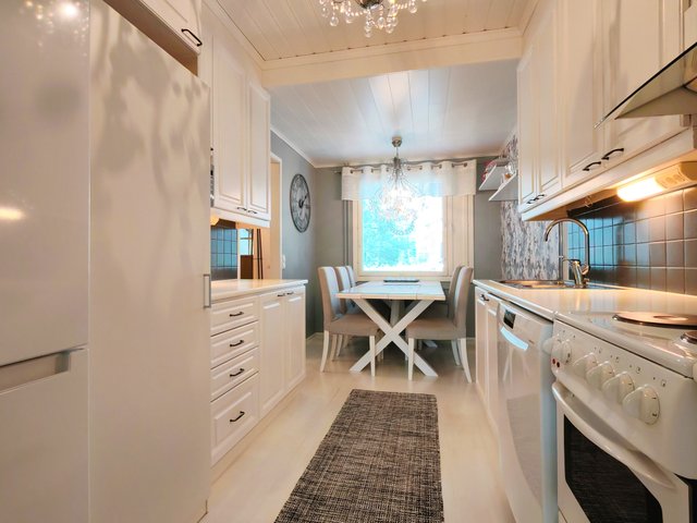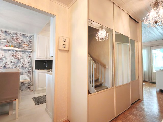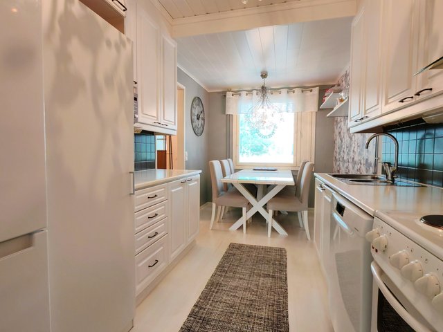Kotoisa kaksikerroksinen rivitalon päätyhuoneisto Kirkonmäellä Tornionjoen läheisyydessä. Kävelymatkan päästä löytyvät koulut, päiväkoti sekä ruokakauppa. Yläkerrassa kolme makuuhuonetta ja lisäksi alakerran tilavasta olohuoneesta on erotettu erillinen työhuone kevyellä väliseinällä. Parvekkeelta vehreät näkymät omalle suojaisalle takapihalle sekä rantaan. Sisäänkäynnin vieressä erillinen ulkovarasto. Taloyhtiössä on tehty vuosien varrella paljon mittavia remontteja, joista viimeisimpänä uusittu käyttövesiputkisto.
