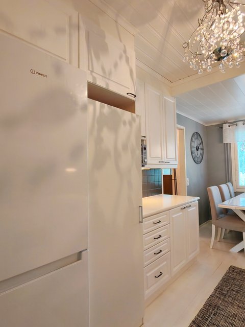 - Kaappien ovet maalattu -22. Parkettien hionta ja lakkaus, alakerran sisäkattojen maalaus -19