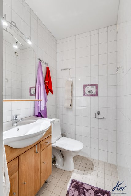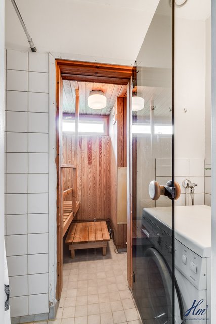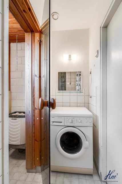 - Osin laatoitettu ja osin maalattu pesuhuone. Pesuhuoneessa on pesukoneliitäntä.