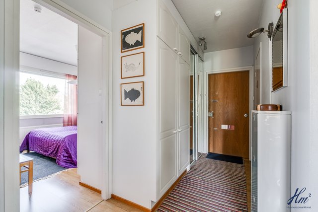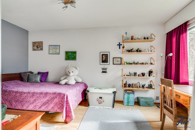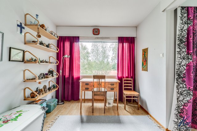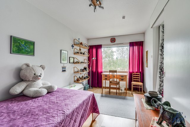 - Kaksi erillistä makuuhuonetta. Makuuhuoneiden lattiapinnat ovat laminaattia ja seinäpinnat on tapetoitu.