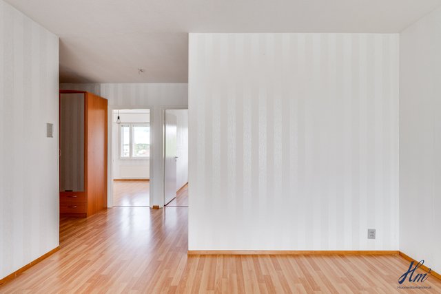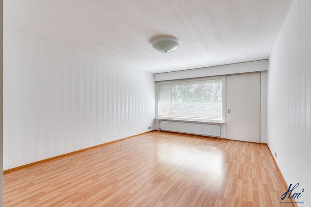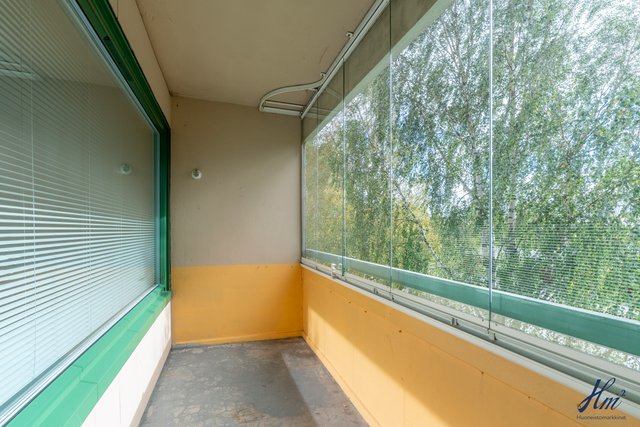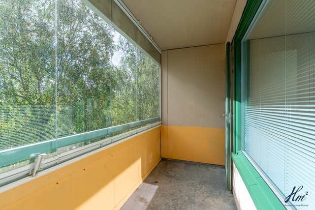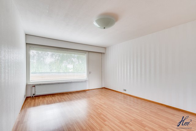 - Olohuoneen lattiapinta on laminaattia ja seinäpinnat on tapetoitu. Olohuoneesta on kulku lasitetulle parvekkeelle.