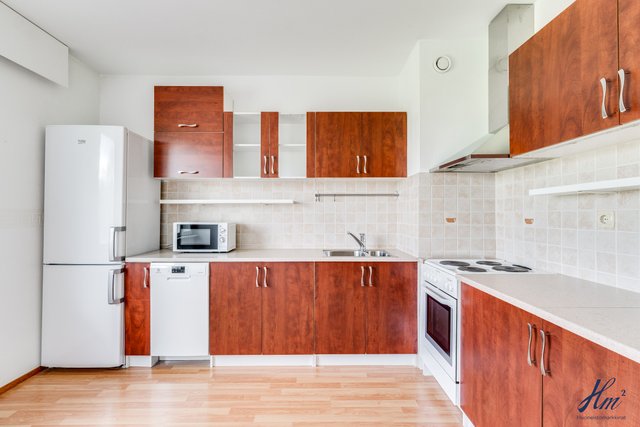 - Kaapistot, sähköliesi, liesituuletin, jää-/pakastekaappi ja astianpesukone. Keittiön lattiapinta on laminaattia ja seinäpinnat on maalattu.