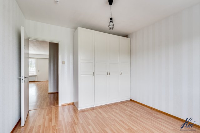 - Makuuhuoneen lattiapinta on laminaattia ja seinäpinnat on tapetoitu.