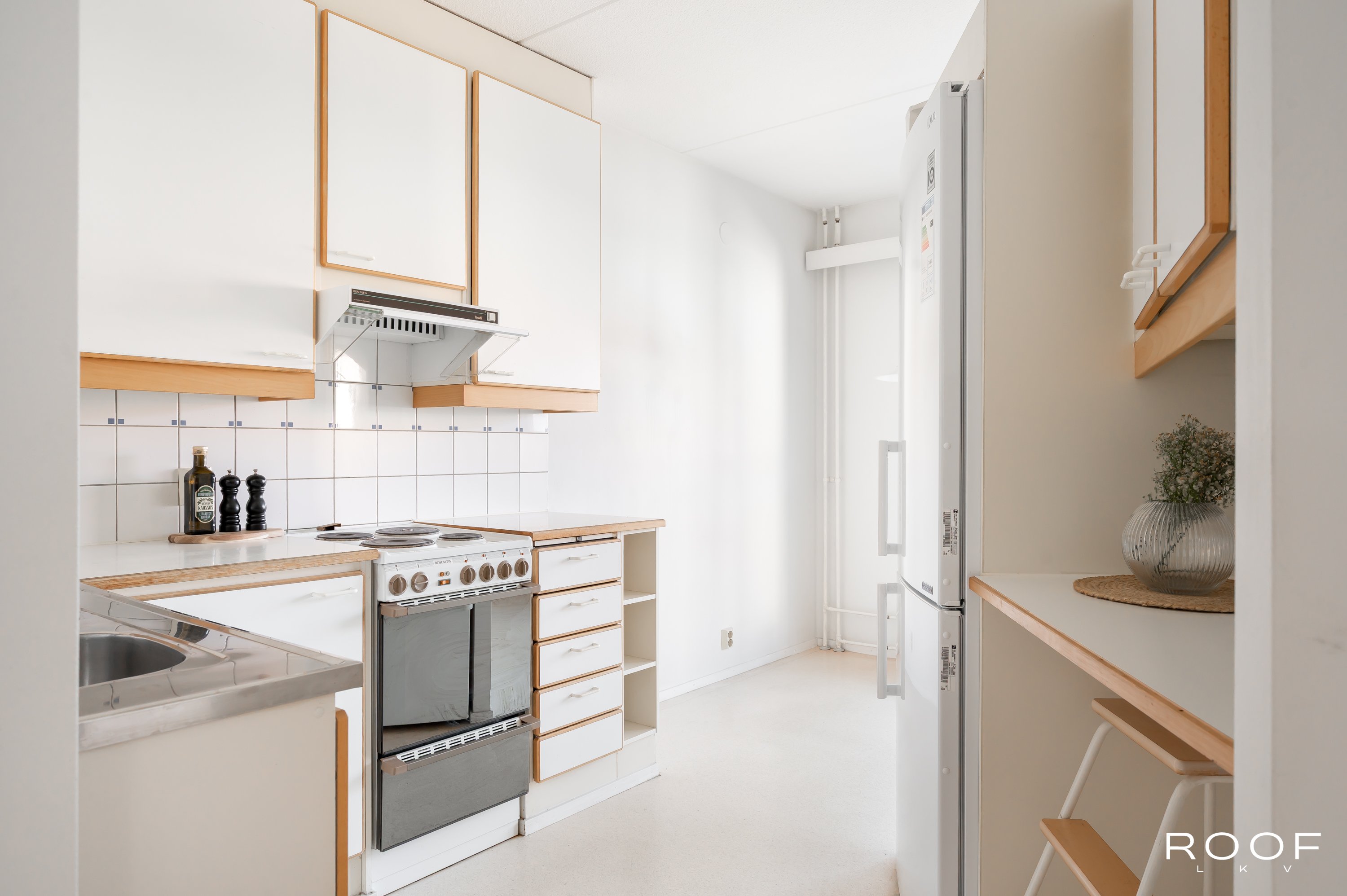 Tervetuloa tutustumaan tähän toisen kerroksen läpitalon kulmahuoneistoon, jossa on valoisuutta ja toimivuutta yhdistävä pohjaratkaisu. Tilava makuuhuone tarjoaa runsaasti säilytystilaa koko seinän levyisellä kaapistolla. Keittiössä on runsaasti säilytys- ja työskentelytilaa, ja sen vieressä avautuva olohuone luo avaran kokonaisuuden. Kylpyhuone on remontoitu taloyhtiön toimesta vuonna 2014, ja sinne mahtuu pyykinpesukone.