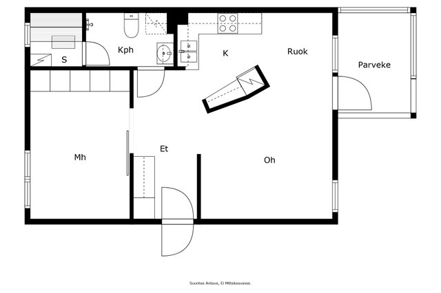 - Pinta-alaa ei ole tarkistusmitattu. Edellä mainittu pinta-ala saattaa tämän ikäisessä kohteessa poiketa olennaisestikin huoneiston nykyisen ja rakentamisaikaisen mittaustapojen ja standardien mukaan laskettavasta pinta-alasta. Huoneiston todellinen pinta-ala voi siis olla yhtiöjärjestyksessä, isännöitsijäntodistuksessa ja esitteessä mainittua pienempi tai suurempi.