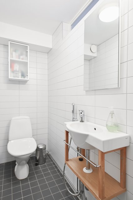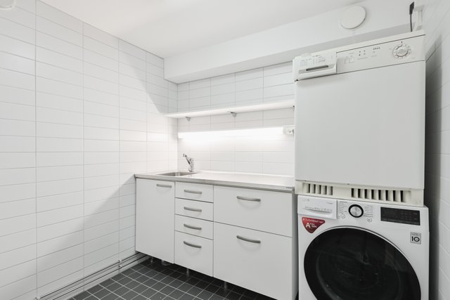 - Lattialämmitys, pesukoneliitäntä, pesuallas, tila pesutornille, ja pöytätaso