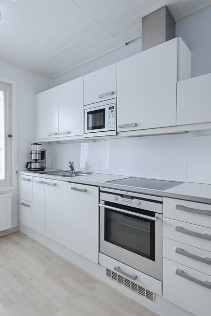 - Jääkaappi, erillinen pakastin, liesituuletin, erillisuuni, liesi, astianpesukone, ja mikroaaltouuni