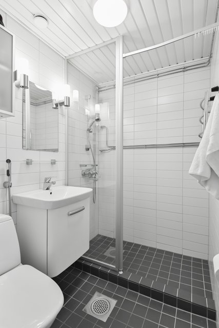 - Yläkerran wc:n yhteydessä suihku. Alakerran kylpyhuone kahdella suihkulla.
