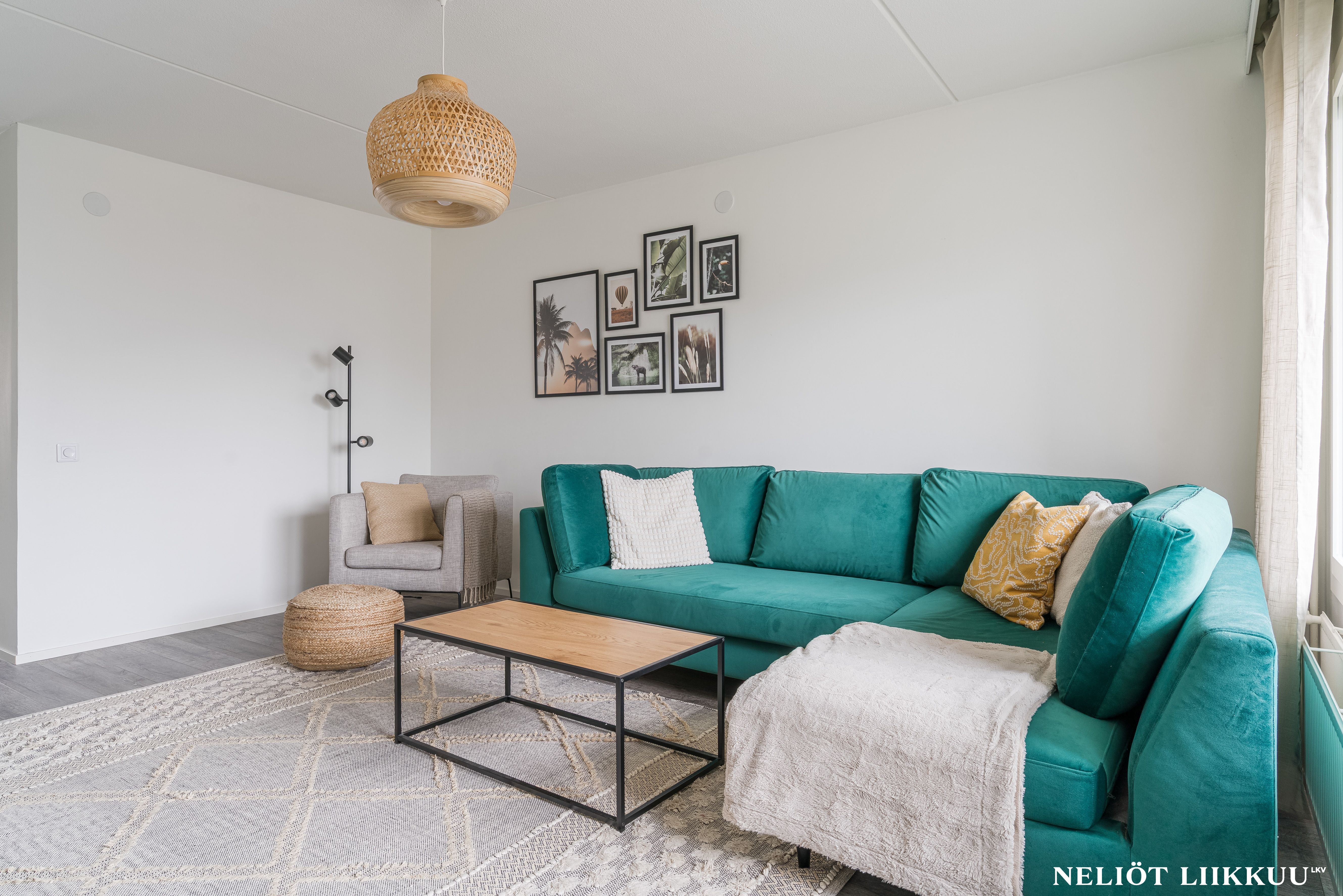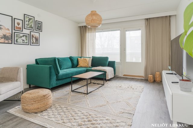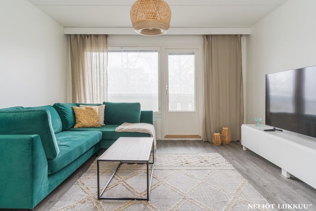- Hyvänkokoinen olohuone, josta käynti lasitetulle parvekkeelle.