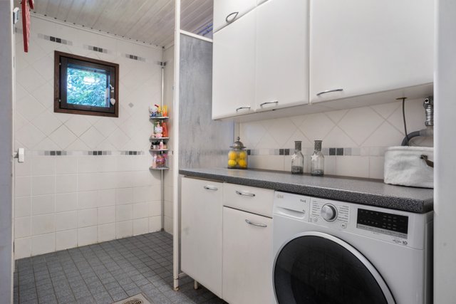 - Pyykkikaapit, lattiakaivo, pesukoneliitäntä, tila pesutornille, ja pöytätaso