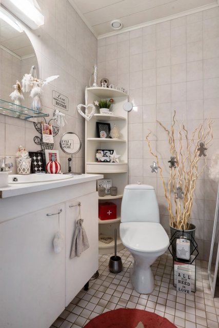 - Suihku, suihkuseinä, pesukoneliitäntä, ja lattialämmitys