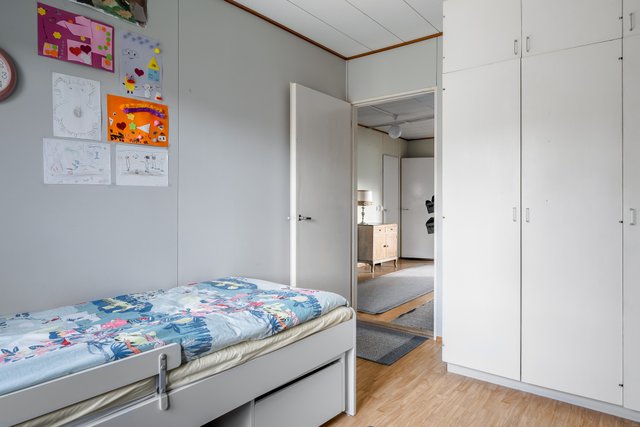 - 2 suurempaa makuuhuonetta sekä yksi pienempi, joka voi myös toimia työhuoneena tai vaatehuoneena.