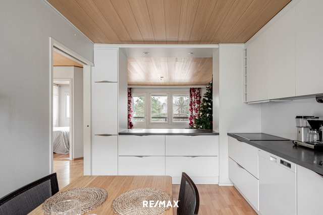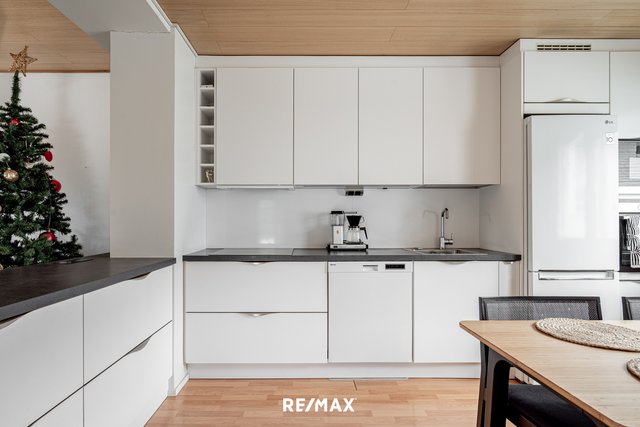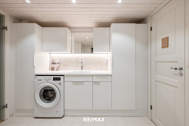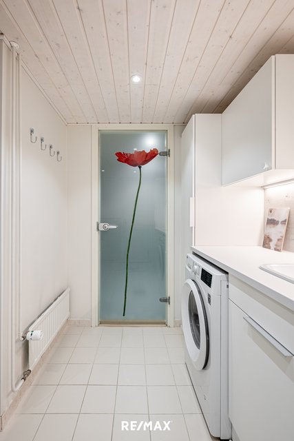 Noblessa-keittiö on uusittu vuonna 2016. Se on ajaton, toimiva ja avara – täydellinen niin arkeen kuin yhdessäoloon. Kodinhoitohuone, sauna ja pesutilat sijaitsevat käytännöllisesti alakerrassa, ja kokonaisuutta täydentävät erinomaiset säilytystilat: tilava vaatehuone, viileä kellaritila sekä oma noin 7 m² kylmä ulkovarasto.