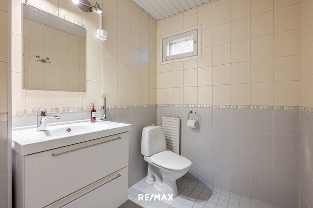 2002 uusittu kylpyhuone sekä saunan lattia ja yläkerran kylpyhuone, joka on nykyään eril. WC.
