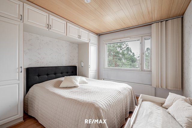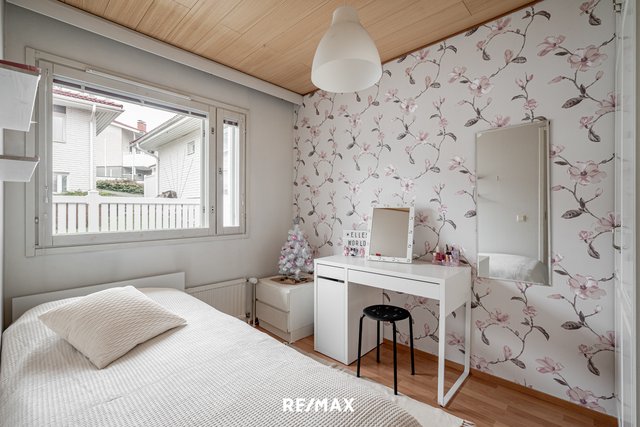 - Yläkerrassa on kaksi makuuhuonetta. Alakerrassa takkahuone sekä askarteluhuone soveltuvat hyvin myös makuuhuonekäyttöön.