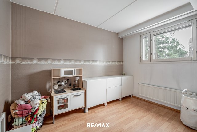 Asunnossa on neljä makuuhuoneeksi soveltuvaa tilaa, jotka mahdollistavat joustavat ratkaisut perheen eri elämäntilanteisiin. Olohuoneen yhteydessä oleva varaava takka tuo tunnelmaa ja lisälämpöä, ja lämmitys sisältyy vastikkeeseen, mikä tekee asumiskuluista ennakoitavat.