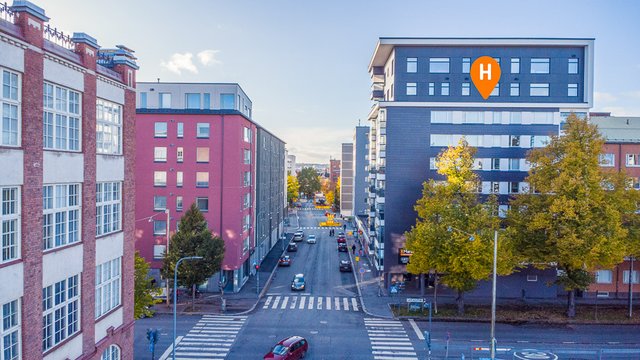 - Bussipysäkki lähellä, raitiovaunupysäkki lähellä, hyvä kulkuyhteys, kaupunkiliikenneyhteys ja hyvät pyöräilytiet