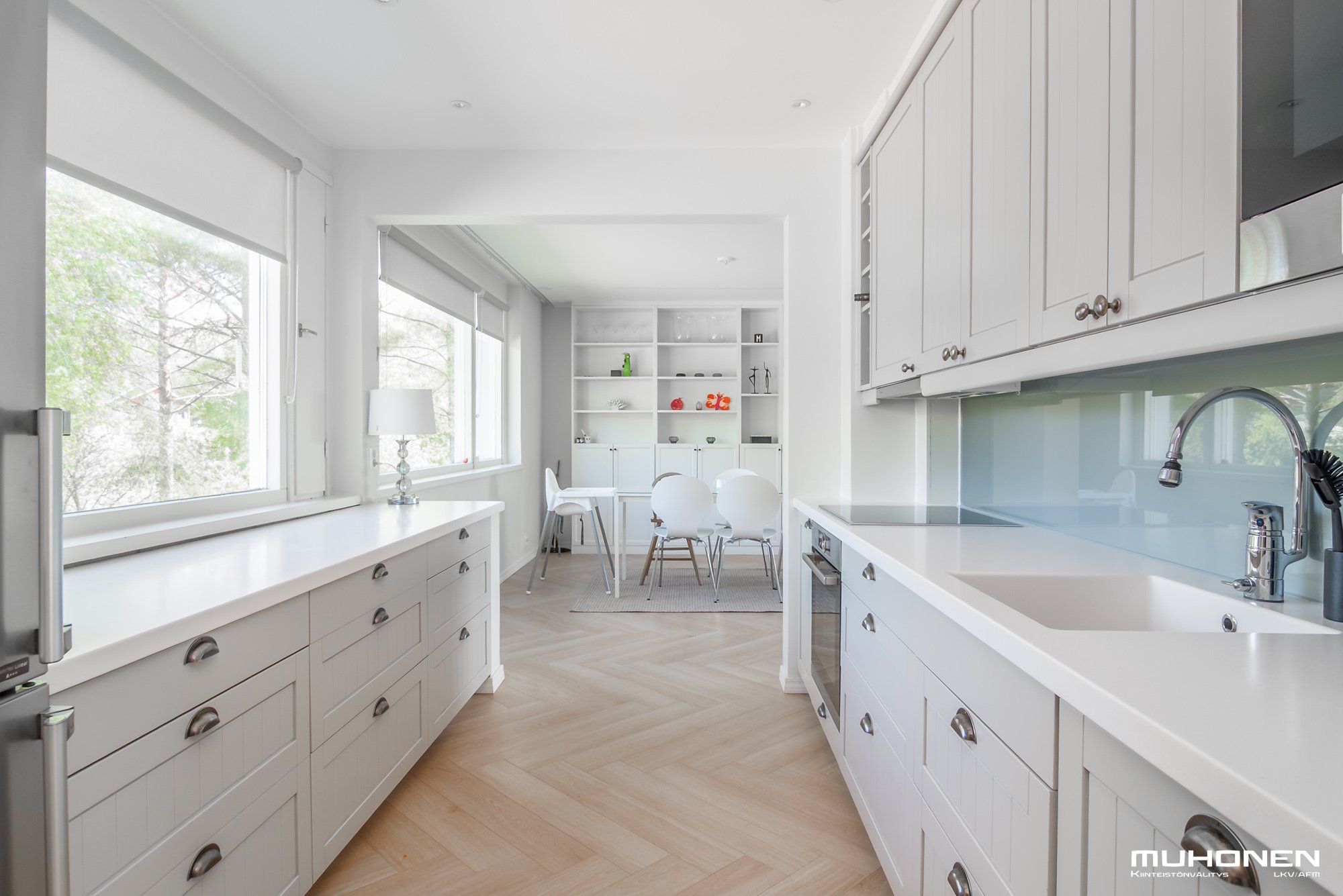- Jääkaappipakastin, uuni, liesi, liesituuletin, ja astianpesukone