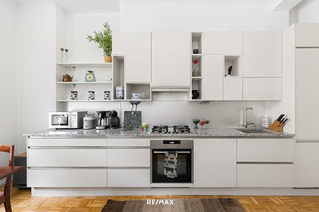 Keittiö on remontoitu tyylikkäästi vuonna 2015, ja se tarjoaa modernit mukavuudet, kuten kivi-työtason ja kaasulieden. Kylpyhuone ja WC on uusittu putkiremontin yhteydessä vuonna 2001.