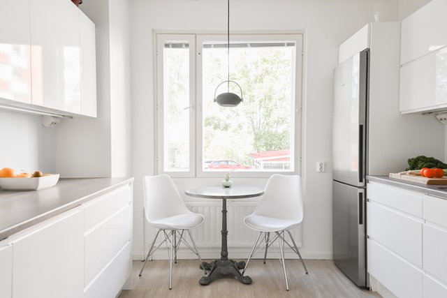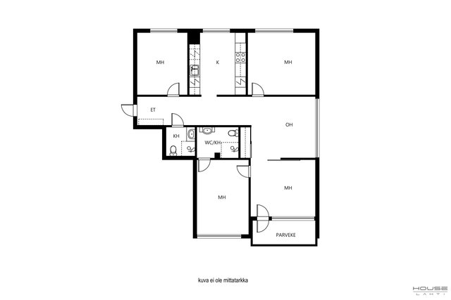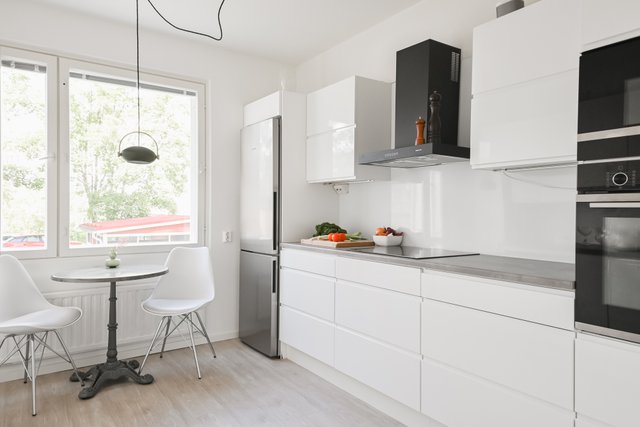 - Jääkaappipakastin, erillisuuni, liesi, liesituuletin, astianpesukone, ja mikroaaltouuni