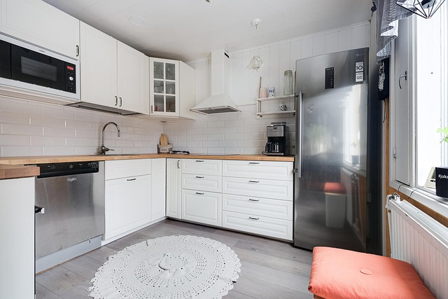 - Liesi, jääkaappi, liesituuletin, astianpesukone, erillisuuni, ja mikroaaltouuni