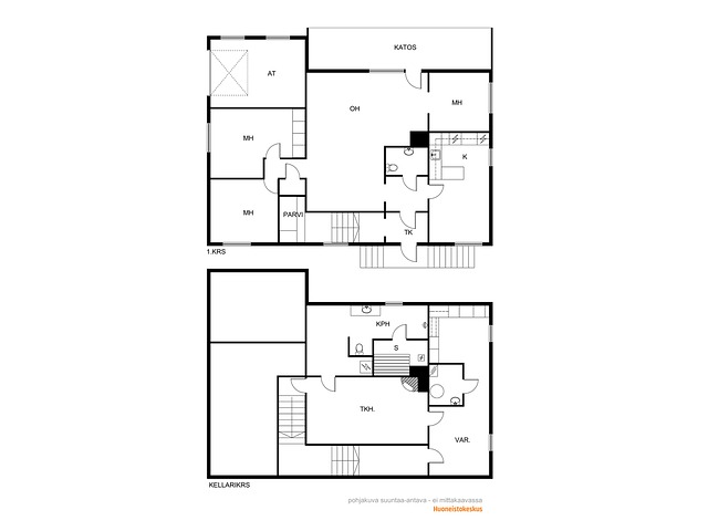 - asuintilojen pinta-alana ilmoitettu rakennuslupapäätöksessä ja rakennusrekisterissä ilmi käyvä kerrosala ja kokonaispinta-alana ilmoitettu rakennusrekisterissä ilmoitettu kokonaisala sisältäen 75 m2 kellarikerroksen.