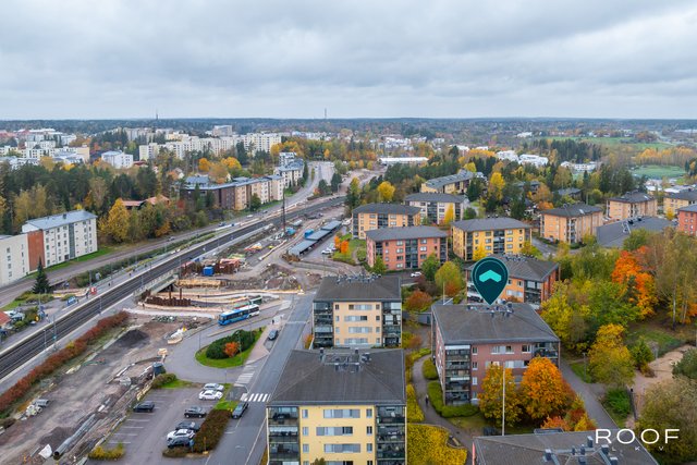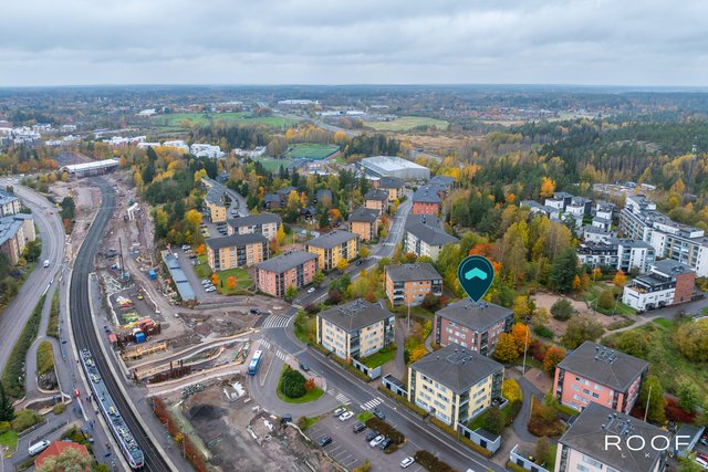 Sijainti on mitä parhain – juna-asema ja bussipysäkki sijaitsevat aivan vieressä, joten liikkuminen on helppoa niin Helsingin suuntaan kuin muuallekin. Läheltä löytyvät myös koulut, päiväkodit ja monipuoliset palvelut sekä Kasavuoren ulkoilureitit ja luonnonrauha vain muutaman askeleen päässä.