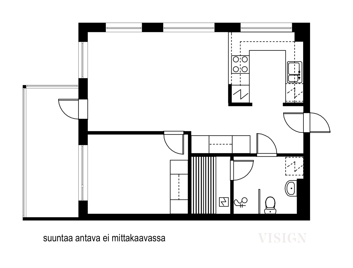 - Erillisuuni, liesituuletin, jääkaappipakastin, astianpesukone, ja liesitaso, kiinteät valaisimet