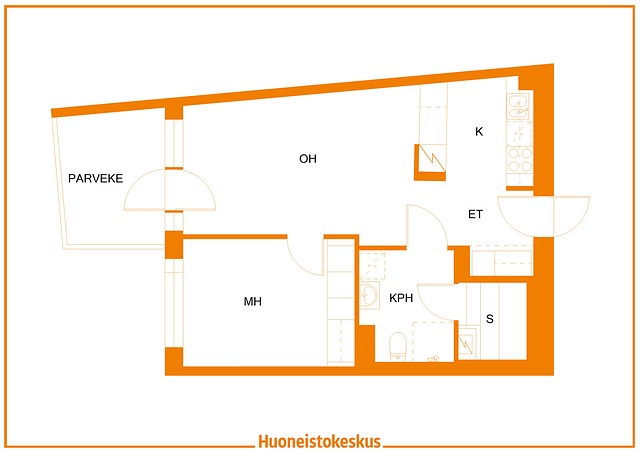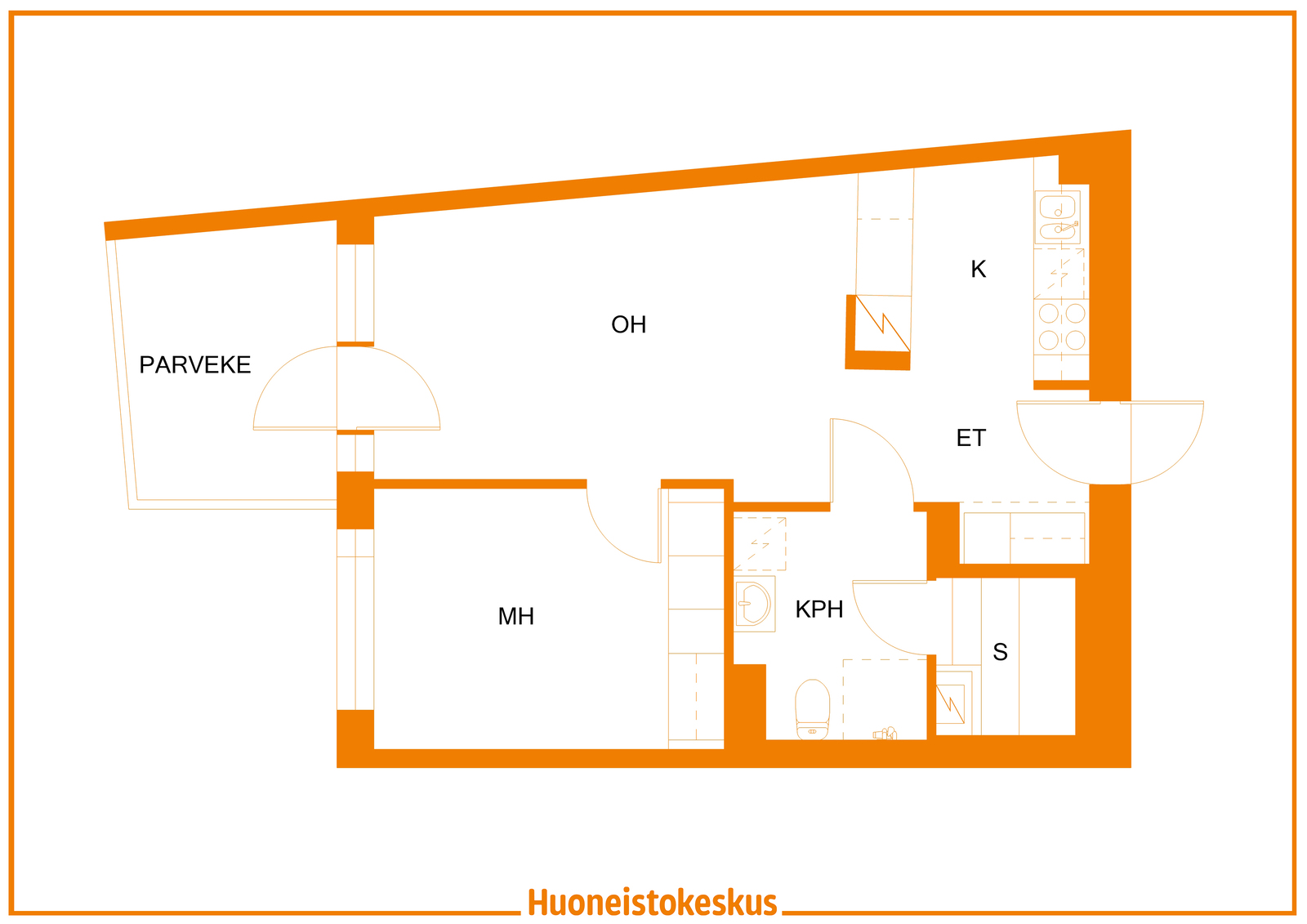 Kolmannen kerroksen kaksiossa on neliöt käytetty todella tehokkaasti, ja tilanjako on toimiva. Keittiöstä aukeaa näkymä olohuoneeseen, mistä käynti lasitetulle parvekkeelle. Oma sauna tuo luksusta arkeen ja kylmiin iltoihin. Saunallisessa kylpyhuoneessa on miellyttävä lattialämmitys ja tilaa on hyvin myös pesukoneelle.