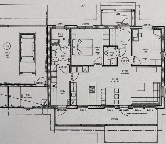 - Asunnon pinta-ala = 88 neliöä + autokatos ja varasto, tekninentila yhteensä 42,75 neliöä.