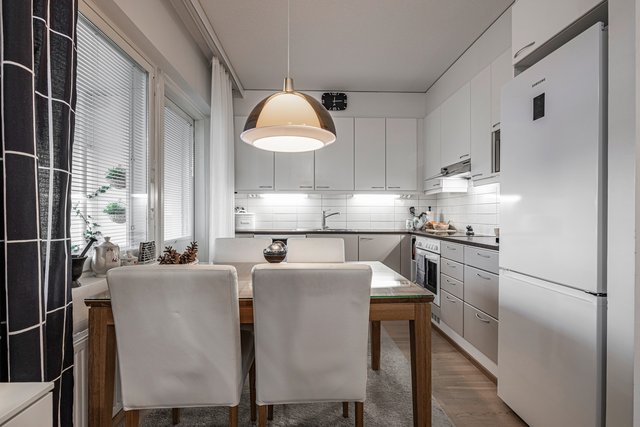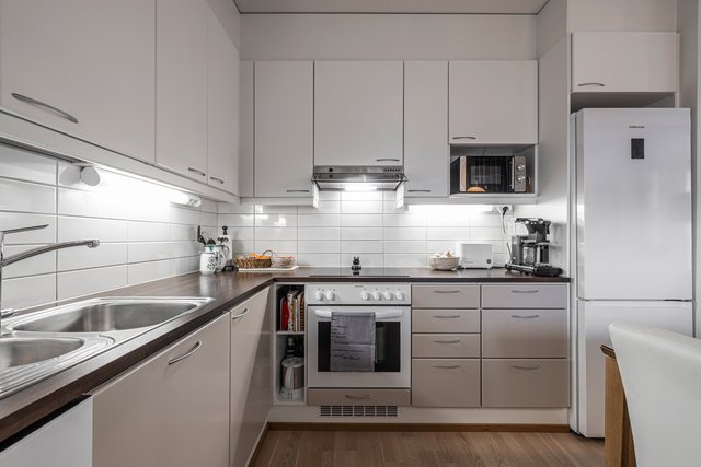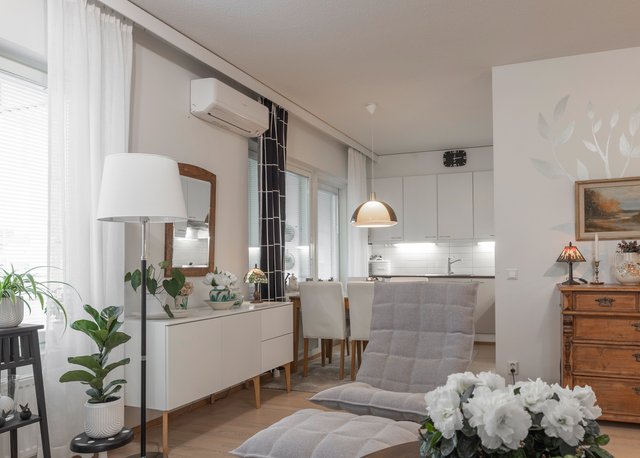 Asunnon keittiö on moderni ja varustettu kaikilla tarvittavilla kodinkoneilla. Olohuone ja makuuhuoneet ovat valoisia, ja niiden lattiat on päällystetty tyylikkäällä parketilla. Kylpyhuoneessa on lattialämmitys, joka tuo mukavuutta arkeen.