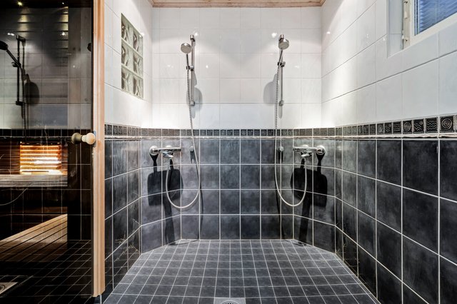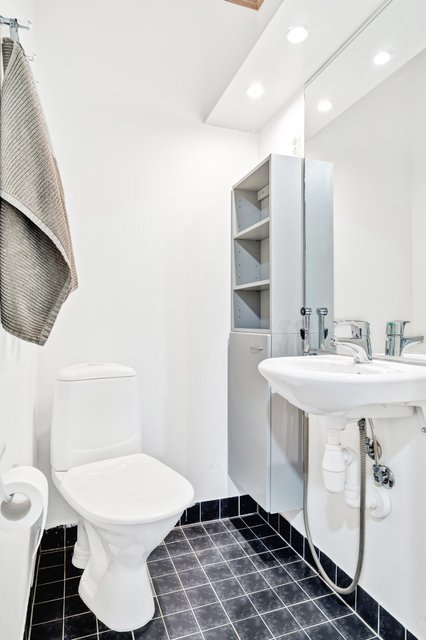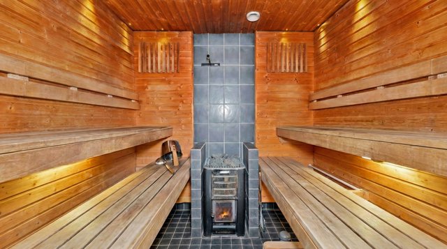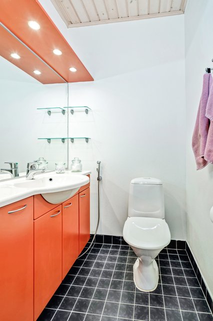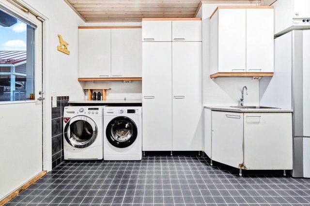 - Pesukoneliitäntä, lattiakaivo, pöytätaso, pesuallas, pyykkikaapit, ja lattialämmitys