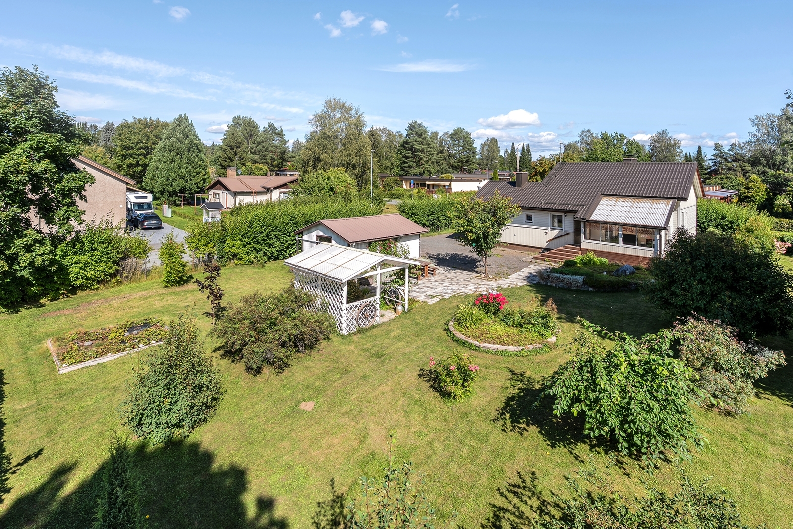 Ympäri aidattu piha-alue tarjoaa turvallisen ja viihtyisän tilan niin lapsille kuin lemmikeillekin. Reilunkokoinen ja vehreä piha kutsuu viihtymään - oli kyse sitten lasten leikeistä, puutarhaharrastuksista tai rauhallisista aamukahveista lasitetulla terassilla. Terassilla voi jatkaa kesäkautta pitkälle syksyyn. Pihassa oleva autotalli antaa säilytystilaa mm. polttopuille tai suojaa autolle.