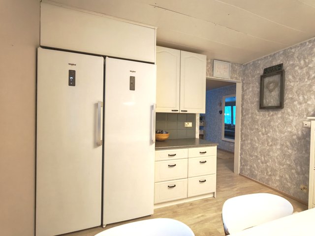 - Jääkaappi, erillinen pakastin, astianpesukone, liesi, liesituuletin, ja uuni